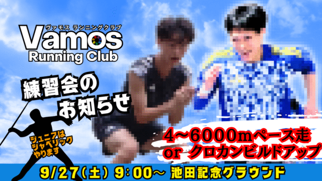 練習会のお知らせ 2025年9月27日(土) 2025年9月26日 vomos https://vamos-rc.com/wp-content/uploads/2024/03/uplogo.png ヴァモス ランニングクラブ