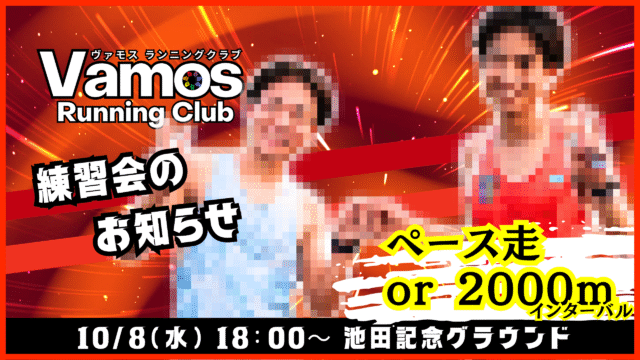 練習会のお知らせ 2025年10月8日(水) 2025年10月7日 vomos https://vamos-rc.com/wp-content/uploads/2024/03/uplogo.png ヴァモス ランニングクラブ