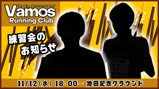 練習会のお知らせ 2025年11月12日(水) 2025年11月11日 vomos https://vamos-rc.com/wp-content/uploads/2024/03/uplogo.png ヴァモス ランニングクラブ