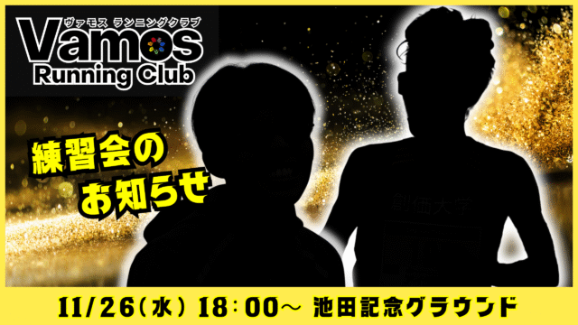 練習会のお知らせ 2025年11月26日(水) 2025年11月25日 vomos https://vamos-rc.com/wp-content/uploads/2024/03/uplogo.png ヴァモス ランニングクラブ