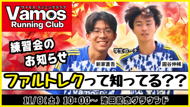 練習会のお知らせ 2025年11月8日(土) 2025年11月7日 vomos https://vamos-rc.com/wp-content/uploads/2024/03/uplogo.png ヴァモス ランニングクラブ