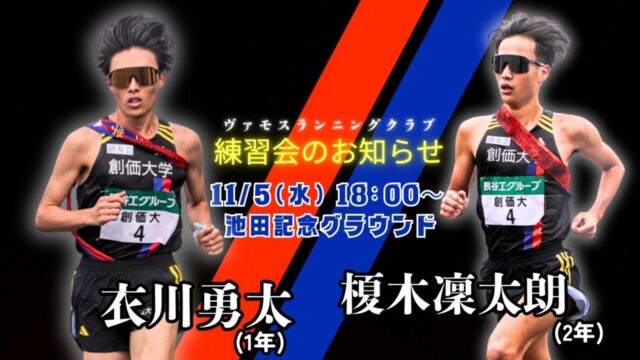 練習会のお知らせ 2025年11月5日(水) 2025年11月4日 vomos https://vamos-rc.com/wp-content/uploads/2024/03/uplogo.png ヴァモス ランニングクラブ