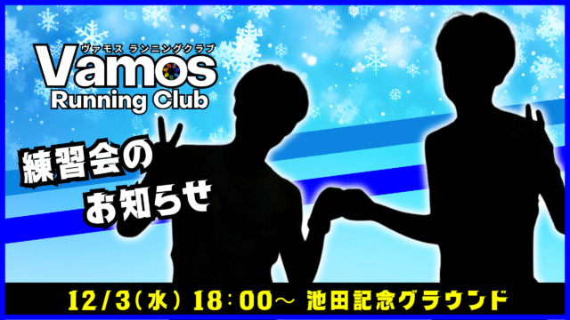 練習会のお知らせ 2025年12月3日(水) 2025年12月2日 vomos https://vamos-rc.com/wp-content/uploads/2024/03/uplogo.png ヴァモス ランニングクラブ