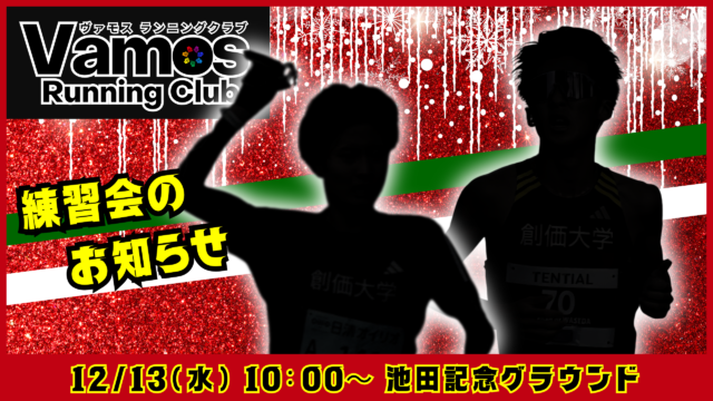 練習会のお知らせ 2025年12月13日(土) 2025年12月12日 vomos https://vamos-rc.com/wp-content/uploads/2024/03/uplogo.png ヴァモス ランニングクラブ