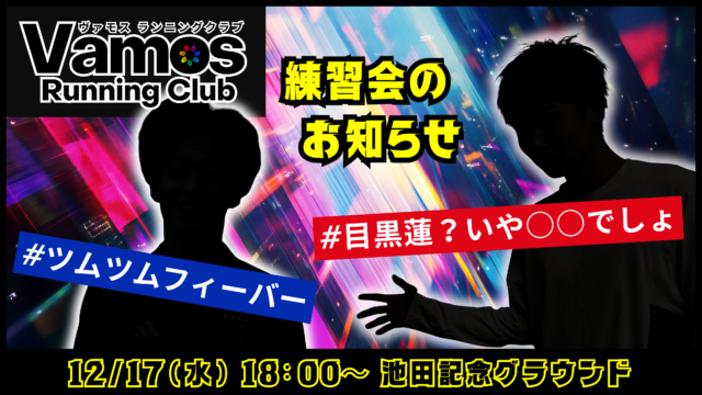 練習会のお知らせ 2025年12月17日(水) 2025年12月16日 vomos https://vamos-rc.com/wp-content/uploads/2024/03/uplogo.png ヴァモス ランニングクラブ