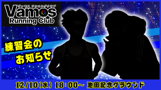 練習会のお知らせ 2025年12月10日(水) 2025年12月9日 vomos https://vamos-rc.com/wp-content/uploads/2024/03/uplogo.png ヴァモス ランニングクラブ