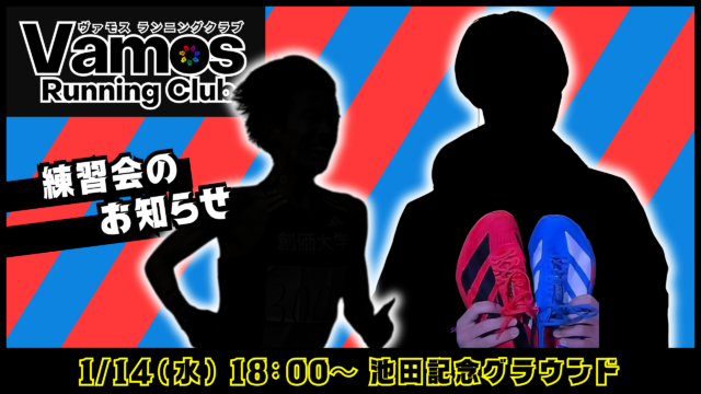 練習会のお知らせ 2026年1月14日(水) 2026年1月13日 vomos https://vamos-rc.com/wp-content/uploads/2024/03/uplogo.png ヴァモス ランニングクラブ